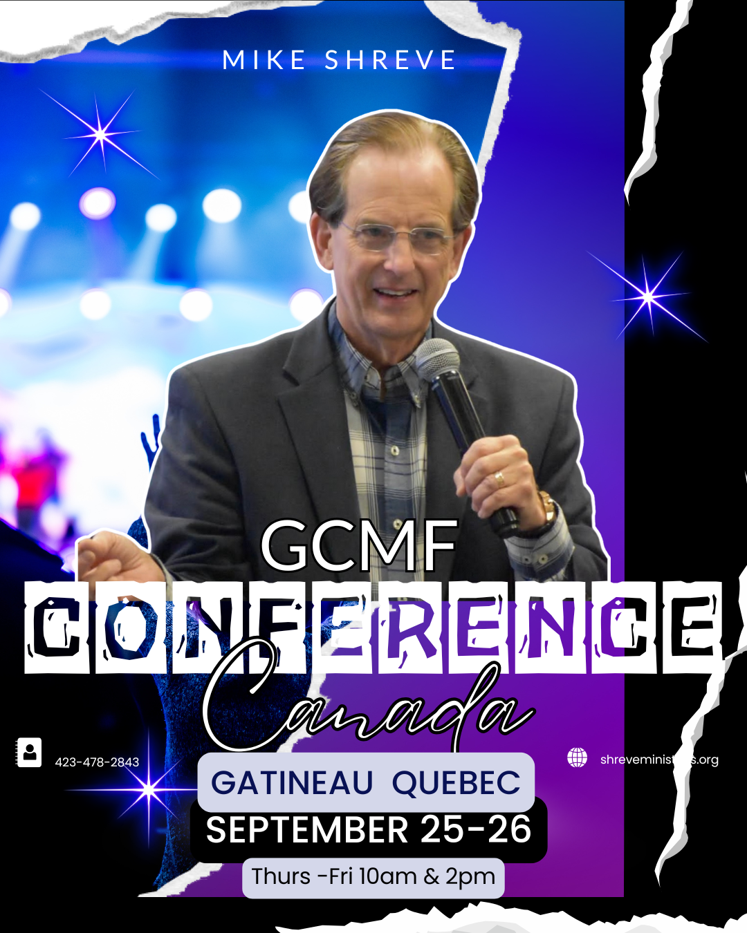 Mike Shreve will be ministering in the day services September 25-26, 10am and 2 pm